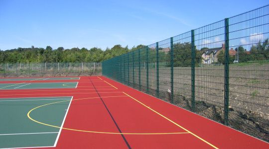 Mesh panel fencing is the modern equivalent to chain link fencing for sports applications. It is more robust and durable than chain link and is available in a wide range of colours